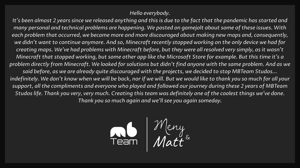 Mojang Studios is not affiliated with MBTeam Studios. Minecraft is a trademark of Mojang Studios.